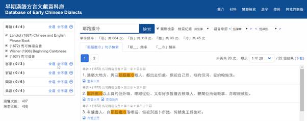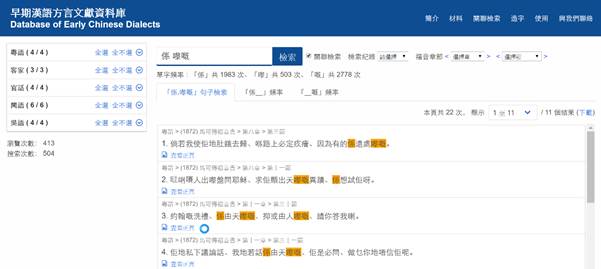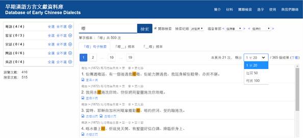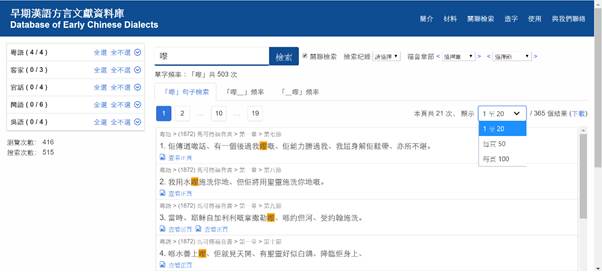 系統默認的檢索範圍是全部21份語料,可以根據檢索需要自行設定檢索範圍