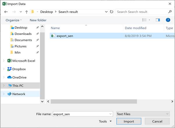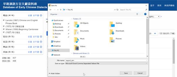 檢索結果可用默認的Microsoft Excel Comma Separated Values File形式下載到目的資料夾