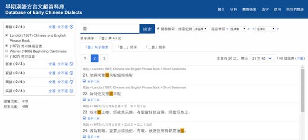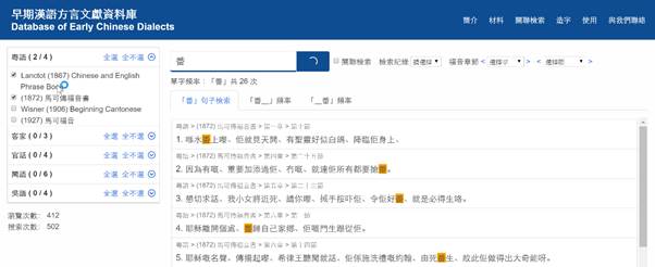 可在所有材料中進行漢字檢索。聖經翻譯材料還可以按某“章、節”檢索