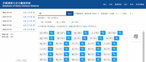 如需同時檢索若干漢字的共現情況,可在檢索欄輸入漢字時,在漢字之間留一空格