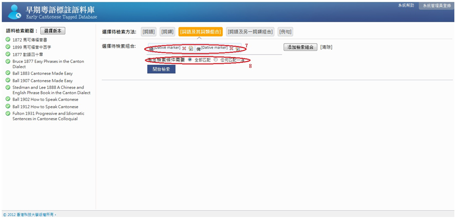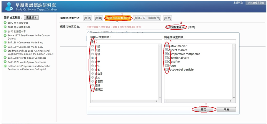 根據詞語及其詞類組合檢索