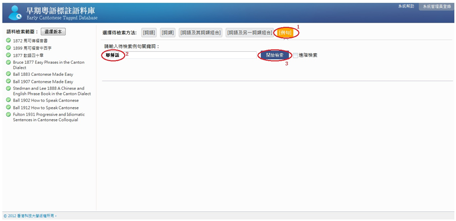 根據例句檢索(常規檢索,使用通配符,進階檢索)