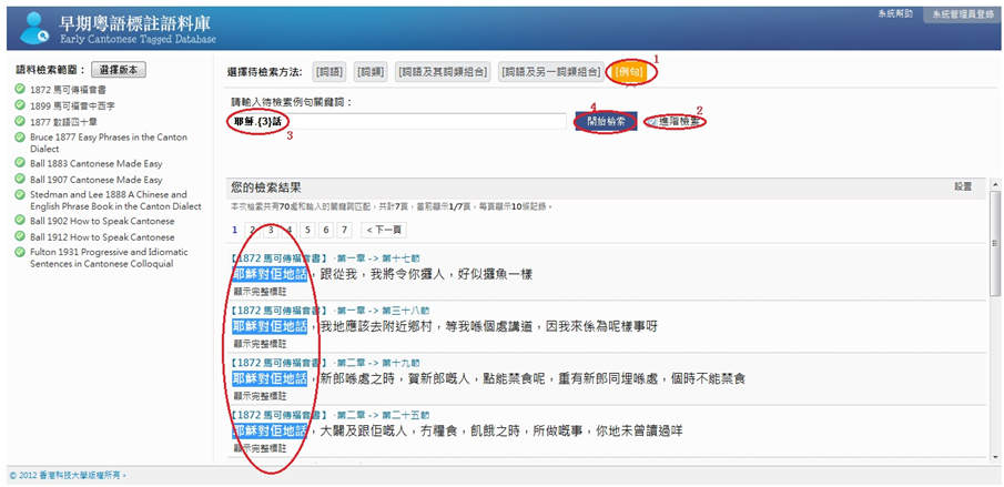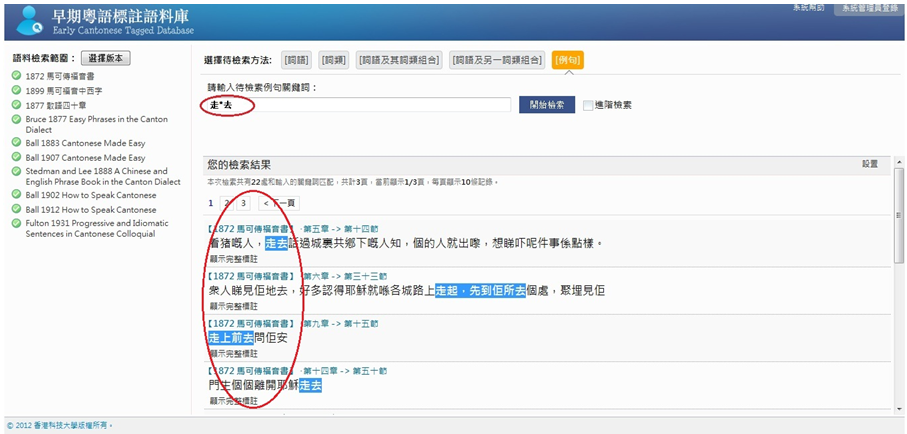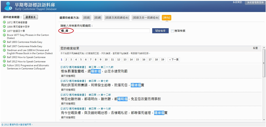 3. 輸入正則表達式,如:耶穌.{3}話,表示檢索所有“耶穌"和“話"之間包含任意3個字符的例句